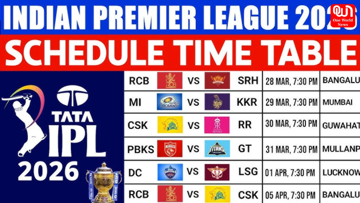 The IPL 2026 fixtures follow standard timings: